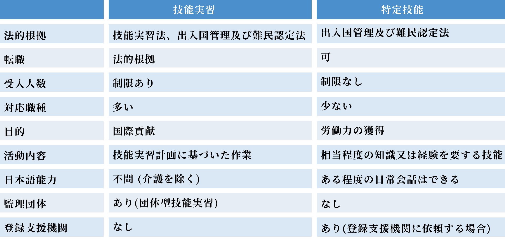 技能実習と特定技能の違い